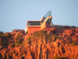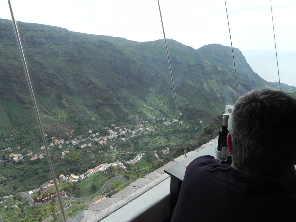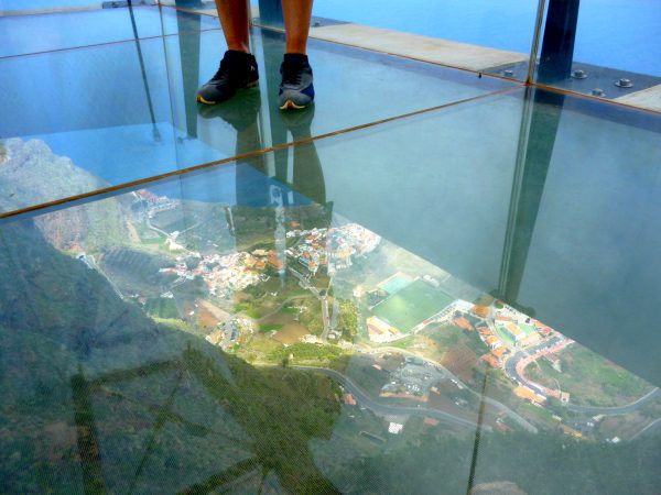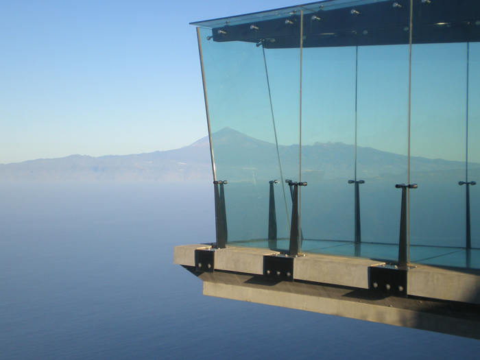 Der Mirador wurde fertiggestellt (Leistung!), stand eine Zeitlang leer und wurde tatsächlich eröffnet. Die Firma Olsen hat sich gegen verschiedene Bewerber bei der Ausschreibung durchgesetzt (!?). In dem Restaurant kann man eine Kleinigkeit essen, die Aussicht genießen und zusehen, wie sich die BesucherInnen auf die Glasplattform wagen. Das ist wie Kino.