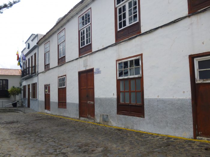Die berühmte Pension Mercedes. Direkt gegenüber der Kirche in Agulo und neben dem Rathaus, dem Ayuntamiento. Heute steht das riesige Haus leer. Es ist zu vermieten (haha). Wer will?