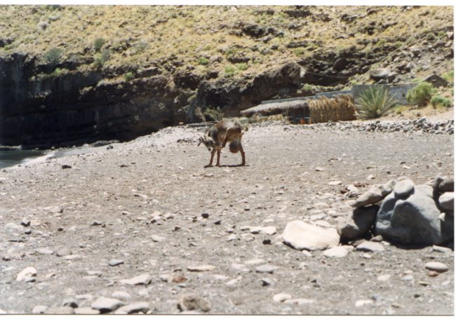 Dieser hier in der Nähe von Alajeró. ganz frei ist er nicht, wie man an der Kette sieht.