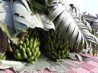 Und zum Schluss noch ein paar Palmen, die für die Herstellung von Miel de Palma (Sirope de Palma) genutzt werden und – mit das Wichtigste auf der Insel – die Bananen, plátanos.