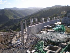 Bild unten: Oben in der Mitte, das ist der Tunnel. Dieses Ensemble bildet den Stadtteil El Charco von Agulo. Mittlerweile werden immer mehr Häuser farbig angestrichen. (Jetzt, 2022, gibt es allerdings Fördergelder, um wieder weiß zu streichen). Wer weiß …