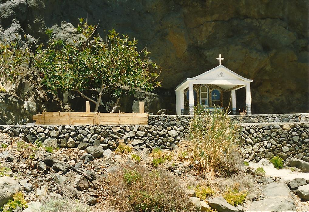 Das war die alte Ermita in Playa San Marcos, Agulo. Bevor ein großer Felsbrocken die Gedenkstätte zermörsert hat.