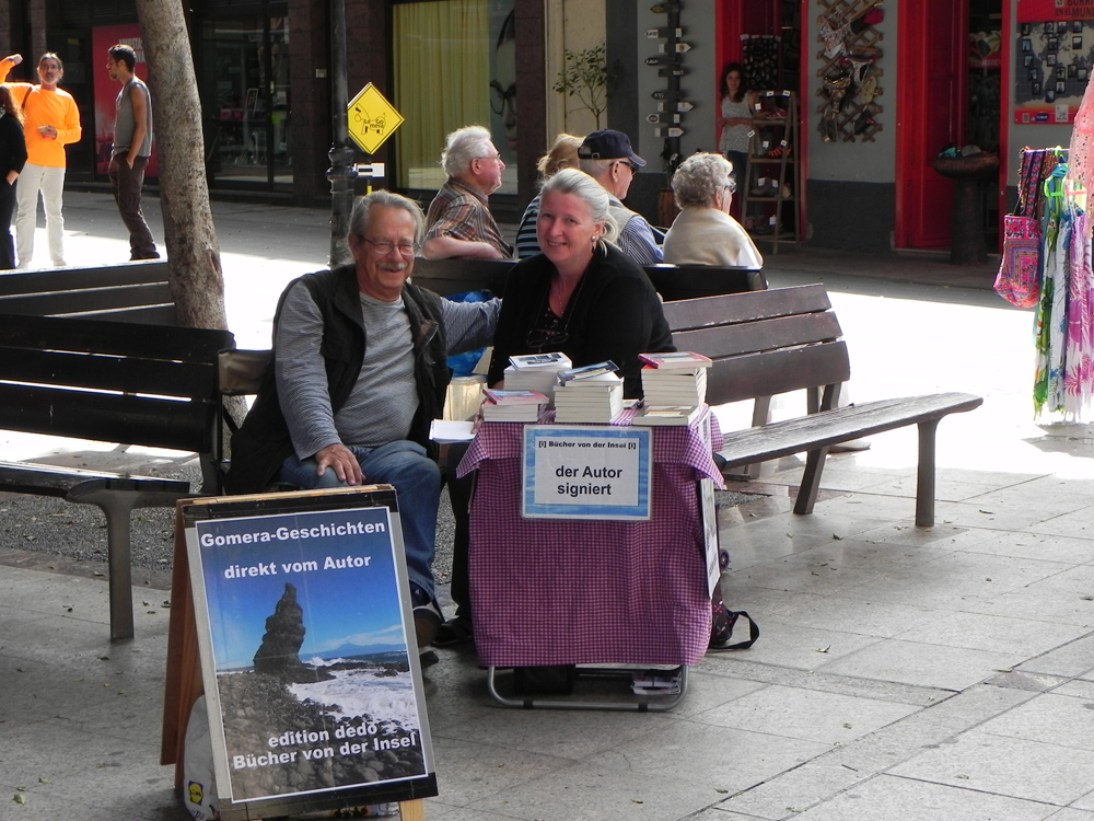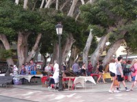 Der Kunsthandwerksmarkt auf der Plaza (de la Constitución), wo früher der normale Gemüsemarkt war, der schon seit geraumer Zeit in der finsteren Markthalle am Busbahnhof sein Dasein fristet. Hier findet man Massageöl, Tücher, Parfüm, Filz, (Recycling-)Schmuck, Bildchen, Holzmörser, kurz: was das Herz begehrt. Und Ohrenschützer, gegen den Wind. Dazu noch für einen guten Zweck. Außerdem findet man da die lieben Kollegen, Ute und Günter Finger: