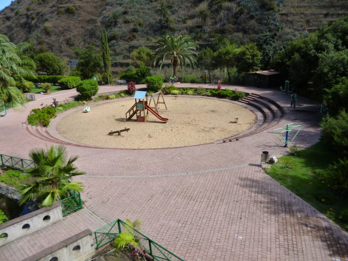 Der Spielplatz in Hermigua, ehedem geplant als Austragungsort der „lucha canarias“, einer lustigen Kampfsportart, in der Männer seltsame Höschen mit aufgerollten Hosenbeinen tragen …