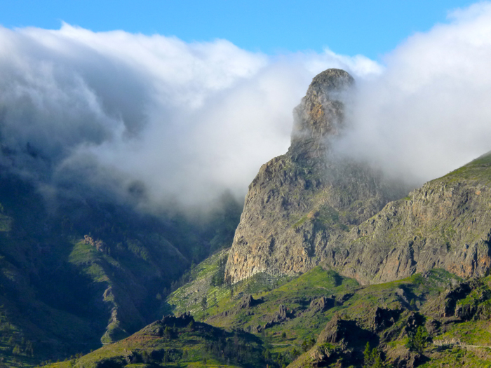 Und schon sind wir an den Roques. Der Roque Agando mit seinen rund 1250 Metern ist sehr beeindruckend. Die Aussicht auch. Wenn nicht gerade der Nebel einfällt …