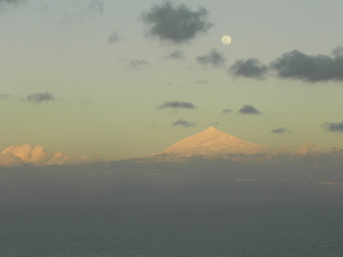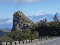Hinter dem Roque Agando (ca. 1.250 m hoch) taucht der Teide von Teneriffa auf.
