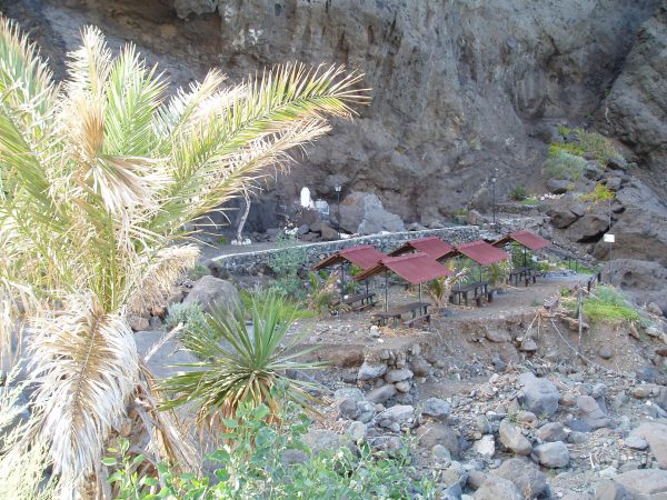 Viele verkohlte Palmen haben wieder ausgetrieben. Nicht alle, zugegeben. Die Stämme sind schwarz verkohlt, aber die Wedel präsentieren sich in saftigem Grün. Wer´s nicht weiß, merkt´s nicht … Naja. Aber das Tal ist schön wie eh und je …