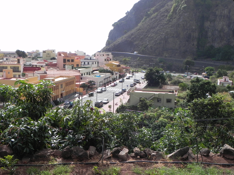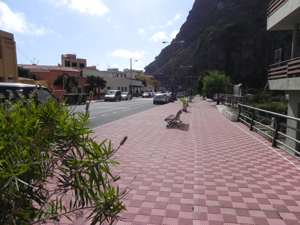 Ab zur Avenida. Blick von oben auf die Promenade von Agulo. Hier führt die Hauptstraße durch, die meisten Menschen fahren an Agulo vorbei – auf der Süd-Nord-Achse. Obwohl es hier drei Kneipen gibt (Bermuda-Dreieck), haben sie entweder ALLE geöffnet oder alle geschlossen. Wenn alles zu ist, fahren die Touristen frustriert weiter, obwohl es gleich ums Eck die nächsten Lokale gibt.